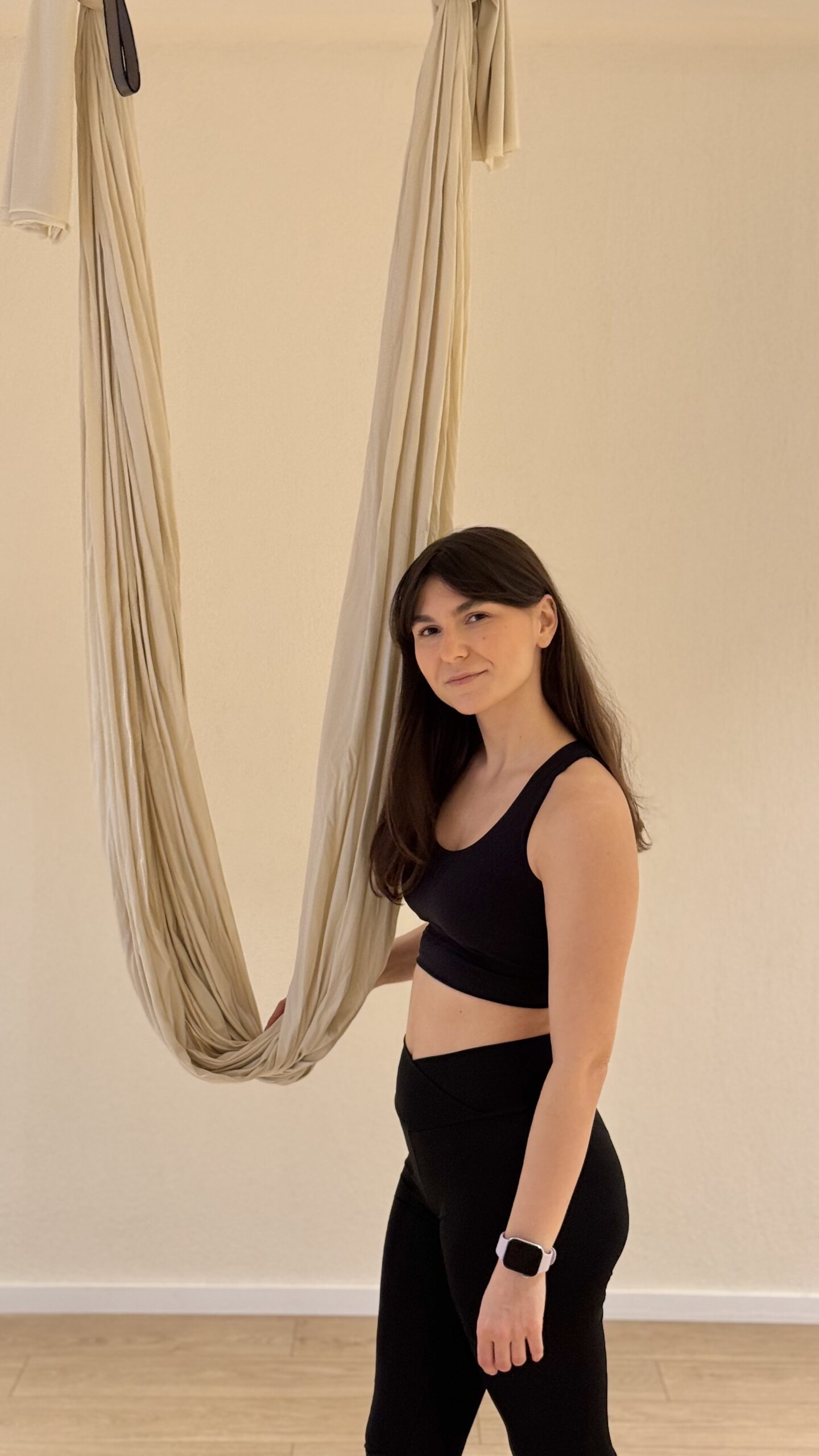 Η γιόγκα εμφανίστηκε ως φυσική συνέχεια αυτής της διαδρομής, ανοίγοντας ένα μονοπάτι αυτογνωσίας, ισορροπίας και παρουσίας. Ολοκλήρωσε εκπαίδευση αναγνωρισμένη από τη Yoga Alliance, η οποία αποτελεί τη βάση για τη βαθύτερη ενασχόλησή της με την πρακτική και τη φιλοσοφία της γιόγκα. Επίσης εκπαιδεύτηκε στην aerial yoga, η οποία τη βοήθησε να ανακαλύψει τη χαρά της αιώρησης, καλλιεργώντας την αίσθηση ελευθερίας, παιχνιδιού και εμπιστοσύνης στον εαυτό.